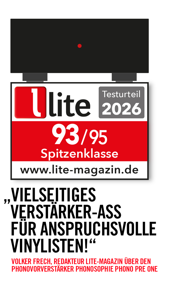 Er schließt seinen Testbericht mit den Worten: „Damit erweist sich der Phonosophie Phonopre One als vielseitiges Verstärker-Ass für anspruchsvolle Vinylisten.“ Sie können den Sonderdruck des Testes hier herunterladen: KLICK